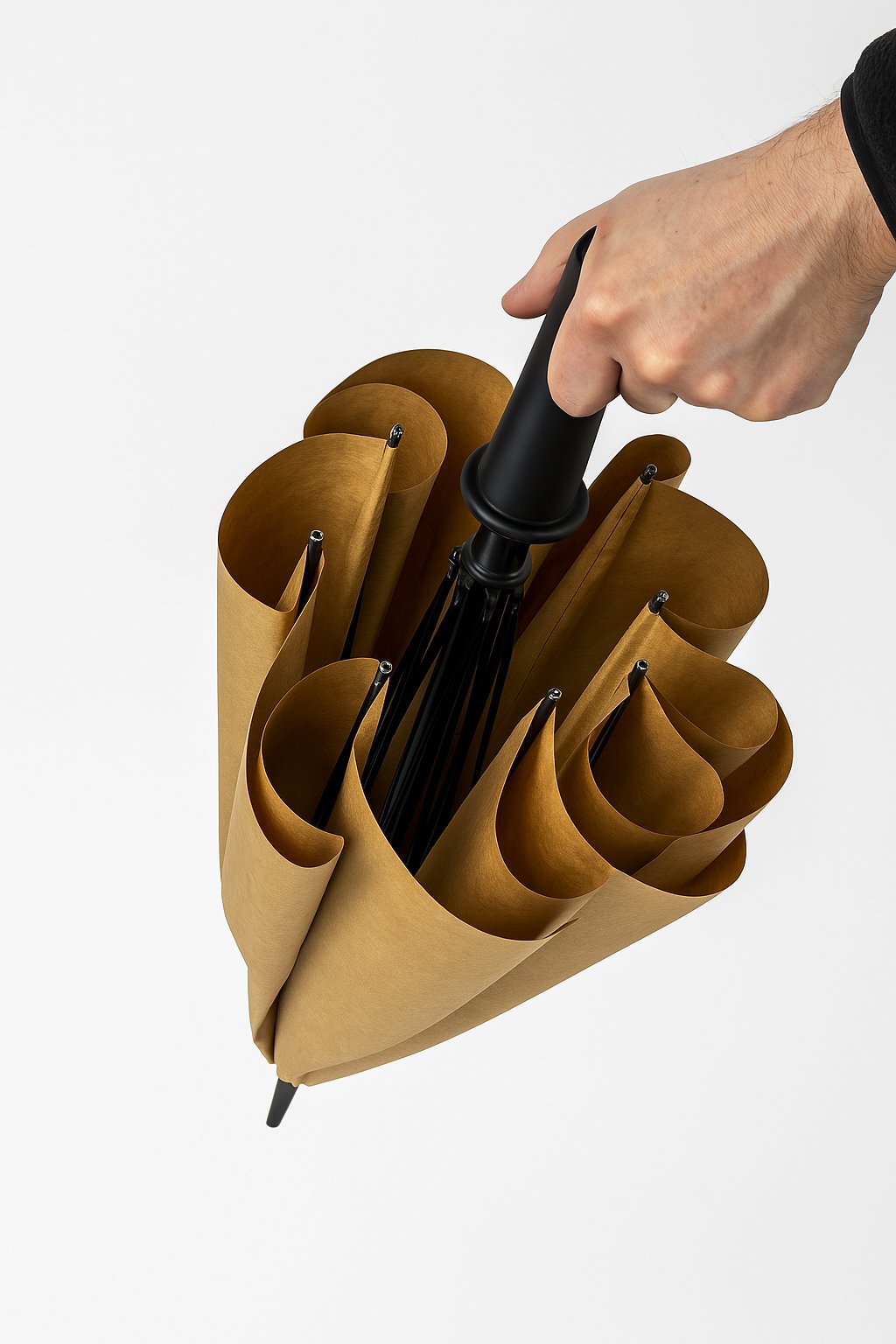 Finding the right solution wasn’t easy. We needed a material that was strong enough to withstand rain and wind, yet biodegradable enough to break down naturally. After countless hours of research and testing, we found our answer: kraft paper. This durable, biodegradable material had the key properties we needed—but it wasn’t enough on its own. The umbrella also had to be waterproof and sturdy enough for daily use. Through countless prototypes and collaborations with experts in sustainability and product design, we discovered ways to enhance kraft paper. By treating it with natural water-repellent coatings like beeswax or coconut oil, we created an umbrella that is functional, eco-friendly, and beautifully designed—proving that sustainability doesn’t have to come at the expense of performance. 🌍♻️